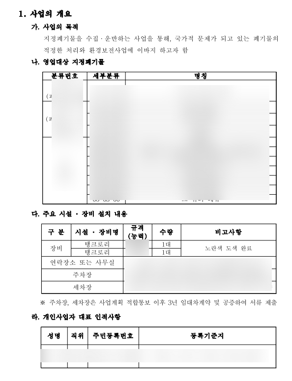 지정폐기물 수집운반업 허가 완료 허가증 수령 / 지정폐기물 주차장 세차장 사무실 기준