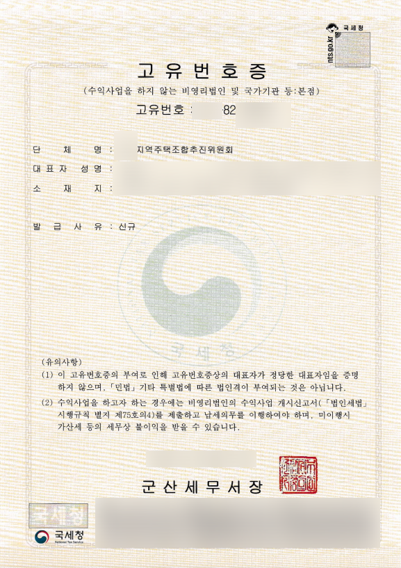 고유번호증의 발급은 어떤 특정한 단체의 승인이나 인정은 아니지만, 협회, 단체로써 최소한 공금 관리 등을 투명하게 한다는 증빙 정도로 볼 수 있습니다. 단체 대표, 총무 등 개인의 명의로 통장을 쓰는 것과, 단체명의 통장을 쓰는 것은 느낌이 확연히 다르니까요.