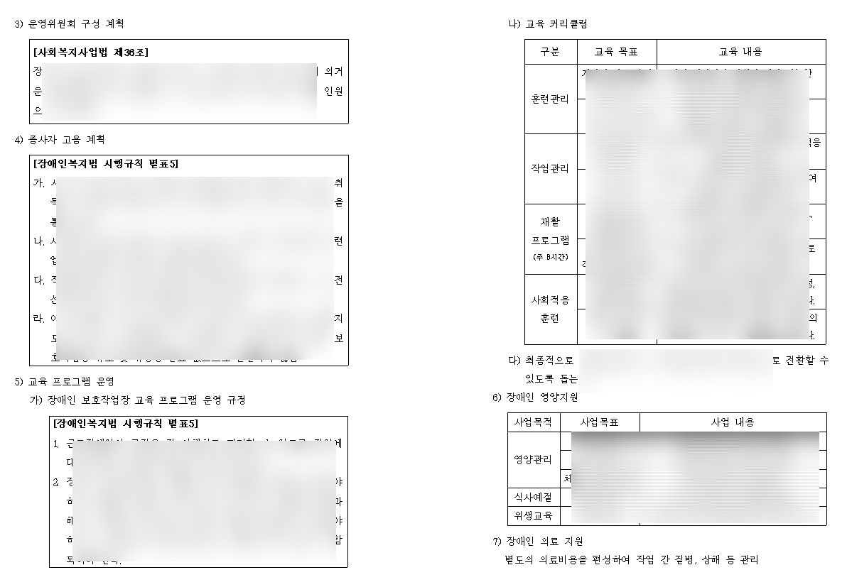 보통 인허가 사업을 하는 경우가 많습니다. 장애인 보호작업장, 장애인 근로작업장, 정보통신공사업, 건설업 등등 인허가가 필요한 있는데, 이 조건을 사업계획서에 명시해주는 것이 좋습니다.
