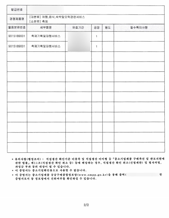 | 부산 축제(전시회 / 기타행사) 기획 및 대행서비스 직접생산확인증명서 발급 (0) | 2026.01.07 |