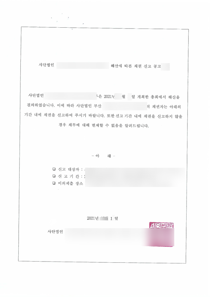사단법인 등의 법인 해산에 도움이 필요한 분들은 언제든 연락주시기 바랍니다.