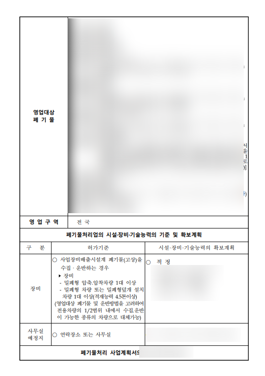 | 폐기물수집운반업 허가 사업계획서 작성 폐기물수집운반업 허가증 수령 (0) | 2025.12.17 |