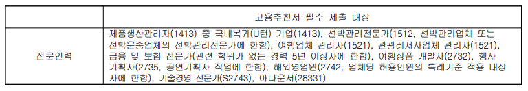 고용추천서 필수 제출 업종은 반드시 제출을 해야합니다.