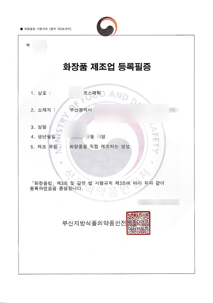 화장품제조업을 등록하기 위해서는 공간이 반드시 필요합니다. 간혹 생활화학제품 신고 후 판매하시는 분들이 집에서 가능하냐고 문의하시는데, 생활화학제품은 가능하지만, 향수와 같은 화장품은 집에서 시설 등록 하는 것이 불가능합니다.