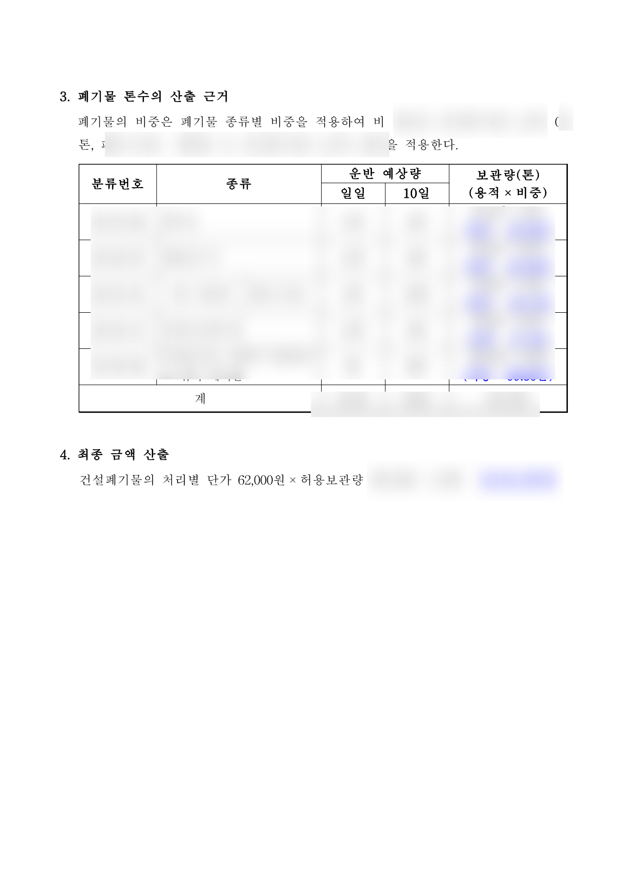 그러다보니 아예 금액 산출을 해서 달라고 하는 것 같네요. 보험사분들이 폐기물 관련 법규를 다 알고 계시진 않으니까요.