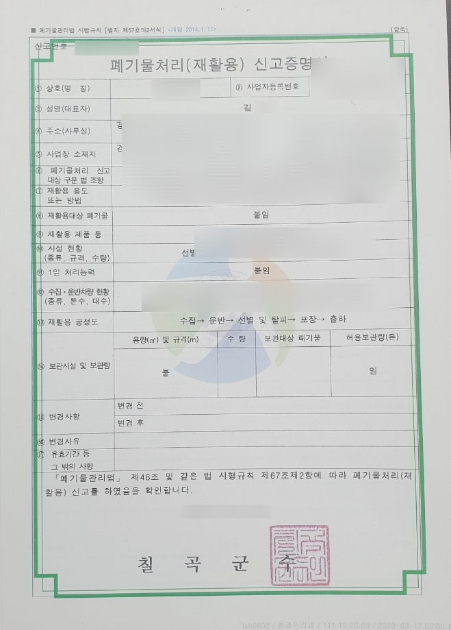 오늘은 연초에 진행했던 폐기물 재활용 신고에 관한 포스팅을 하고자 합니다.