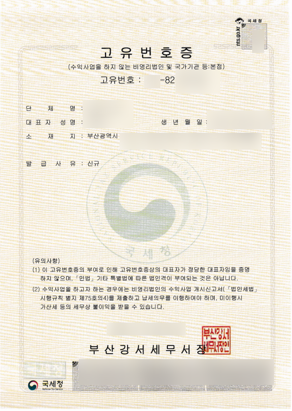 안녕하세요. 오늘은 부산에서 의뢰를 받아 진행한 예술, 문화단체의 고유번호증 발급에 관한 포스팅입니다.