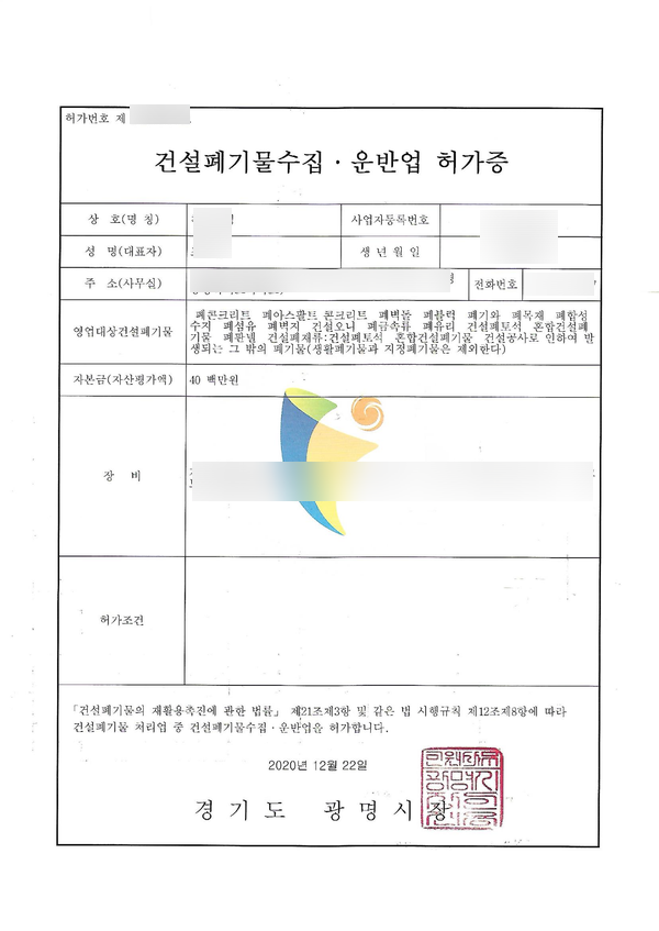 건설폐기물 등 그 종류가 다양하고, 분류에 맞게 허가를 내야 합니다.