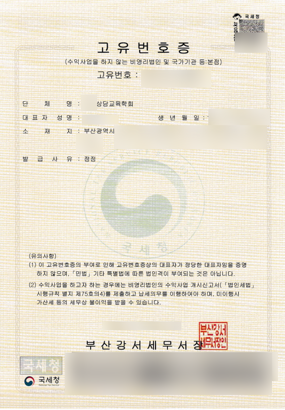 고유번호증을 가진 단체는 민간자격증 등록을 할 수 있습니다.