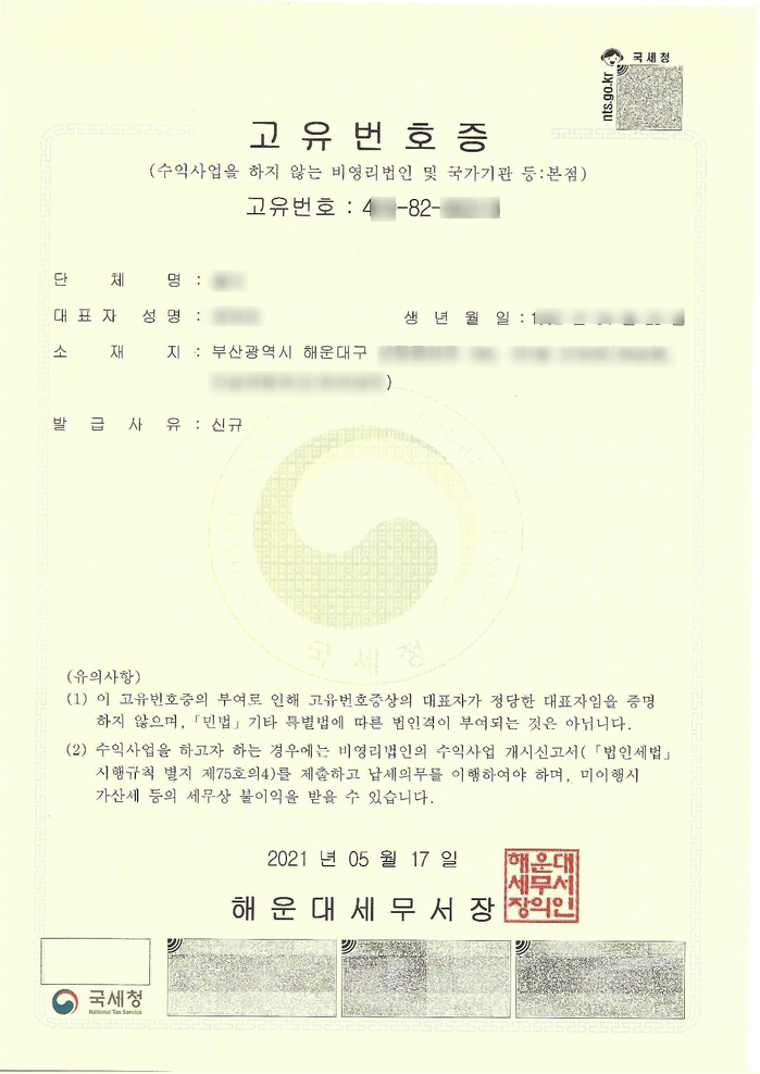 따라서, 정부 사업 등 단체 지원, 자금 관리를 위해서는 고유번호증을 발급받아야 합니다.