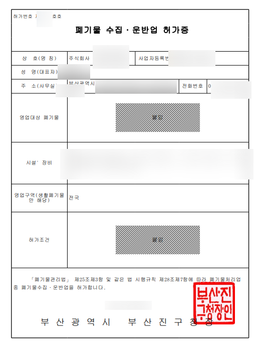 | 부산 폐기물수집운반업 허가(처리업 허가) 절차 및 서류 안내 (1) | 2025.12.31 |