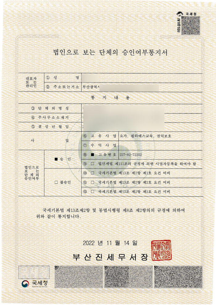 따라서, 협회를 '대한필라테스헙회'와 같이 등록해서 발급하는 경우가 많습니다.