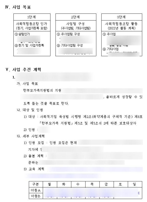 실제 사회적협동조합 인가를 위해 핵심이 되는 서류입니다. 사회적협동조합 또한 비영리법인이다 보니, 목적사업이 주무부서와 맞지 않을 경우 인가가 어렵습니다.