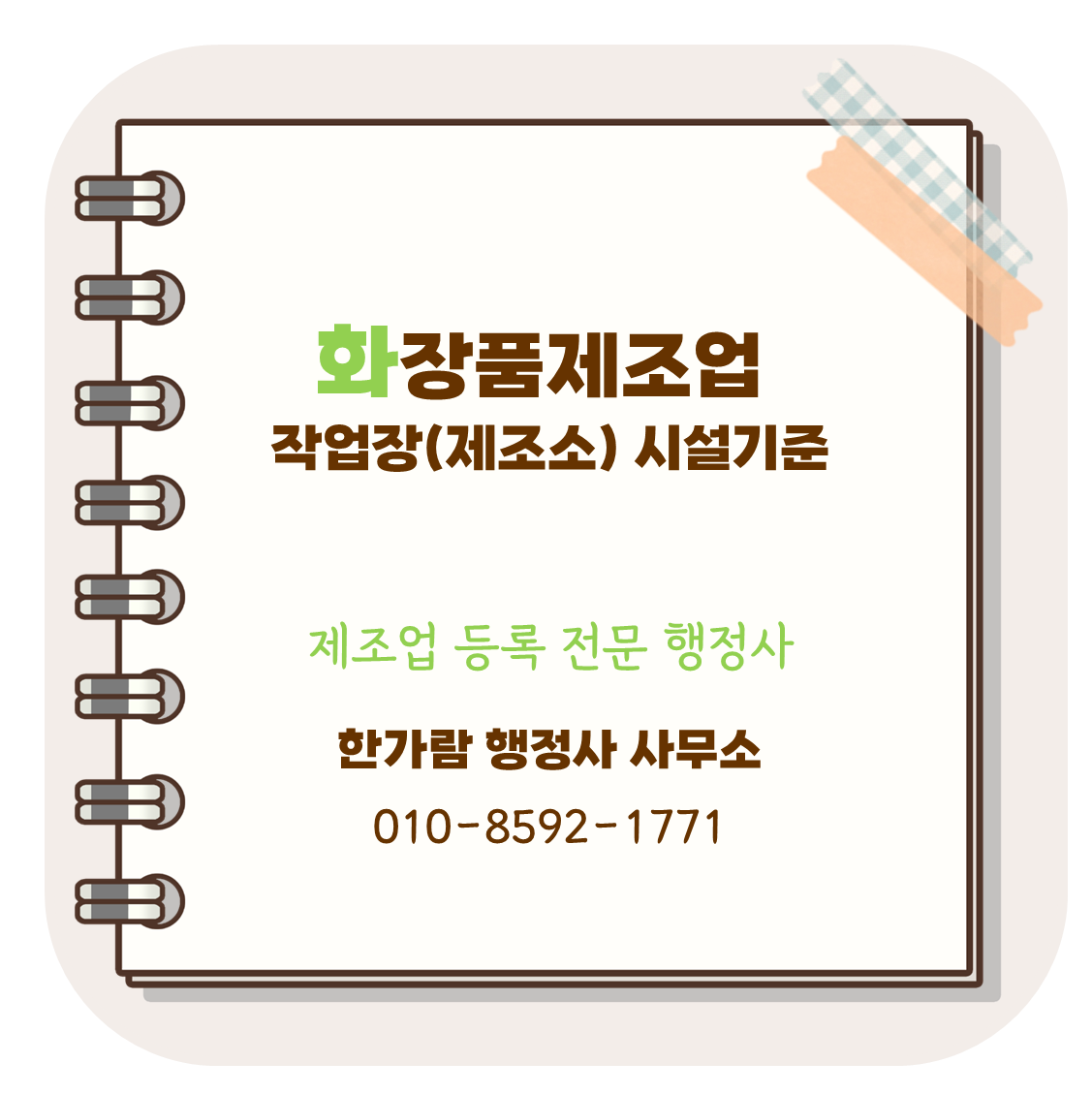 이 글에서는 화장품제조업 등록신청을 위한 작업장(제조소)의 기준에 대하여 알아보았습니다.