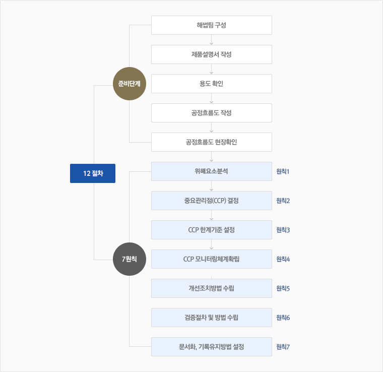 예비 또는 준비 5단계와 해썹 HACCP 7원칙을 합쳐서 12절차라 합니다.