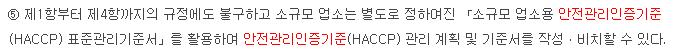 ※ 「식품 및 축산물 안전관리인증기준」(식약처 고시)의 해당 원문