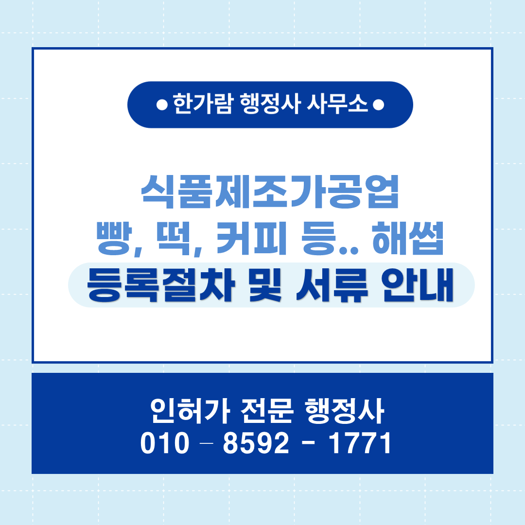 식품제조 가공업 등록 업무에 관련하여 궁금한 사항이 있으신 경우 언제든 연락주시기 바랍니다.