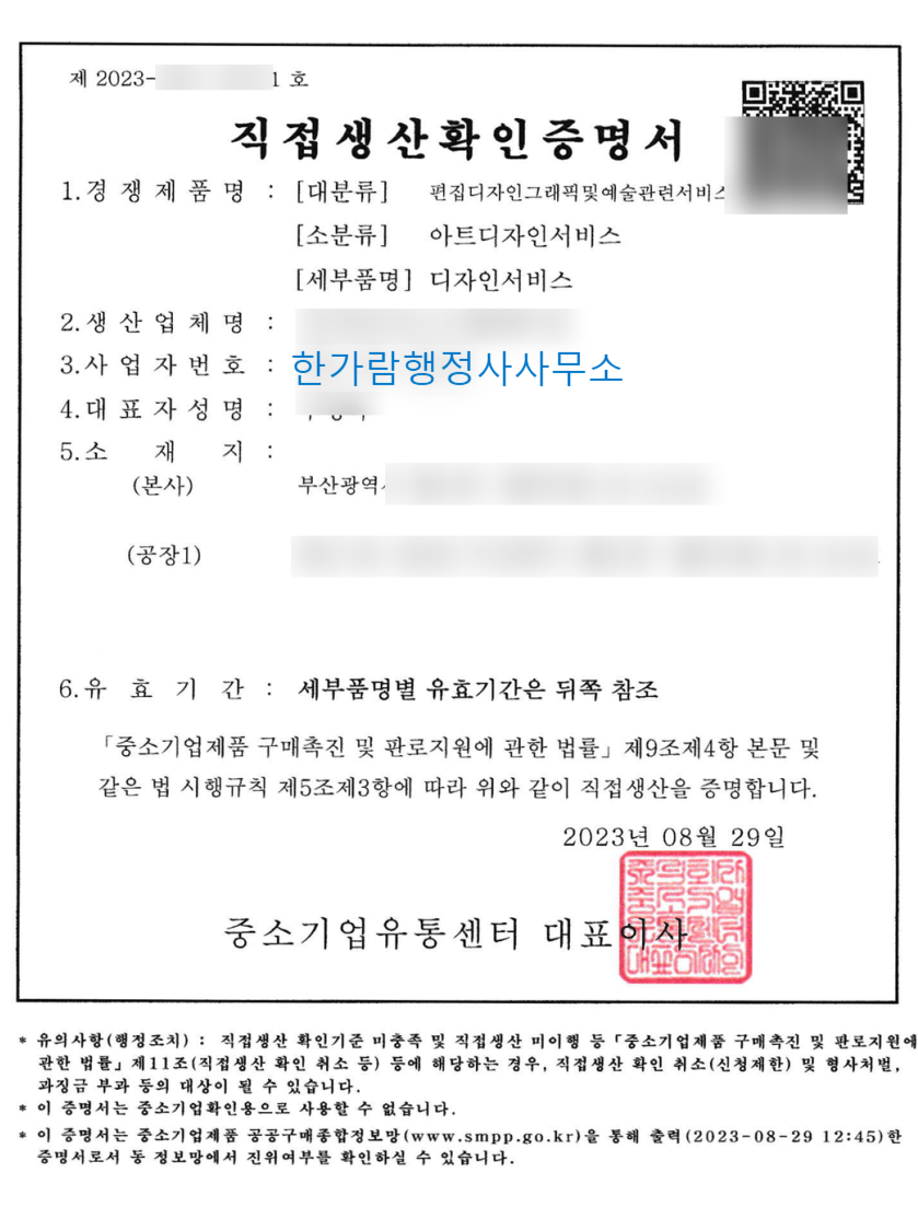직접생산확인증명서 발급에 3주 정도 소요될 수 있는 점 참고 바랍니다.