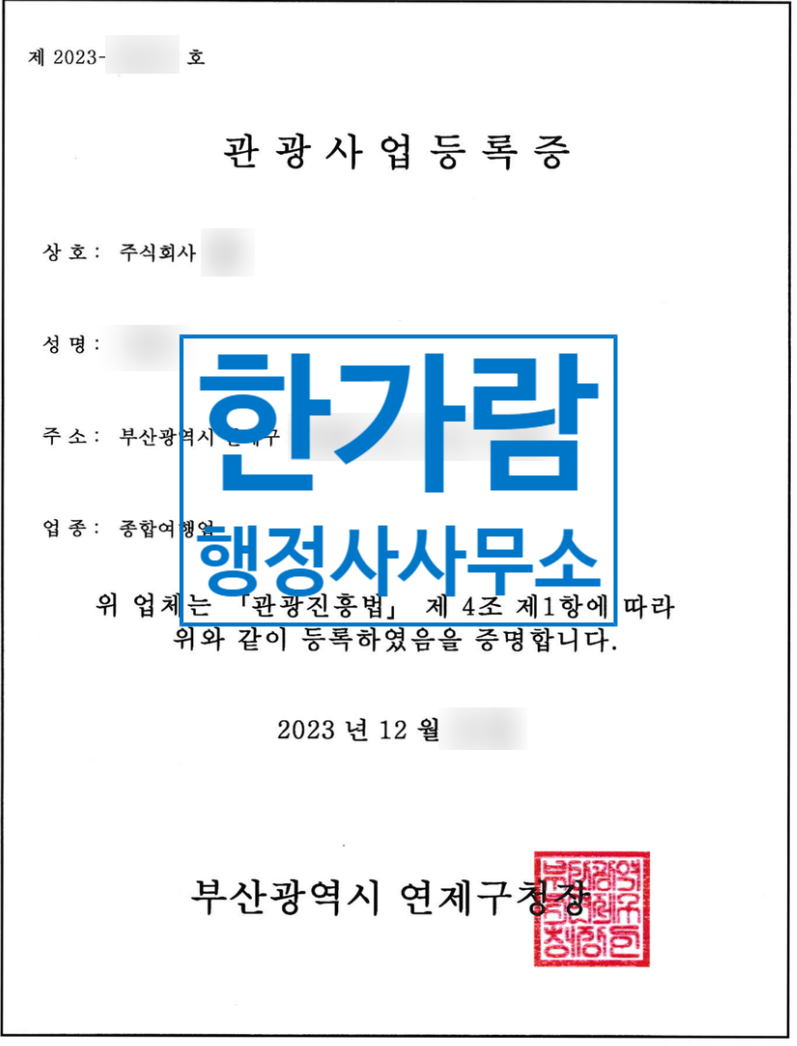 여행업 등록 절차 및 준비할 서류, 관광사업등록증 발급