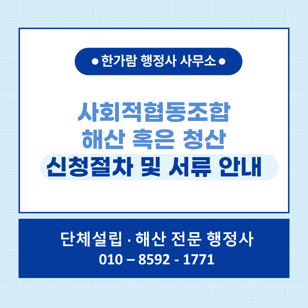 협동조합 설립, 해산 청산 관련하여 궁금한 사항이 있으신 경우 언제든 연락주시기 바랍니다.