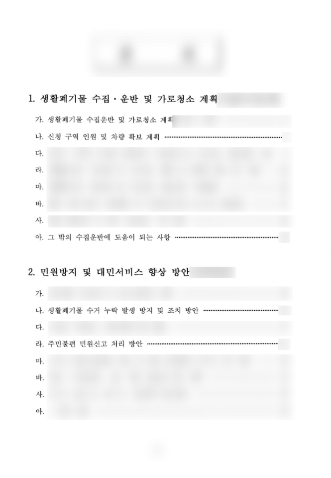 생활폐기물 수집운반업 허가 및 입찰 제안서(정성평가) 작성 사례