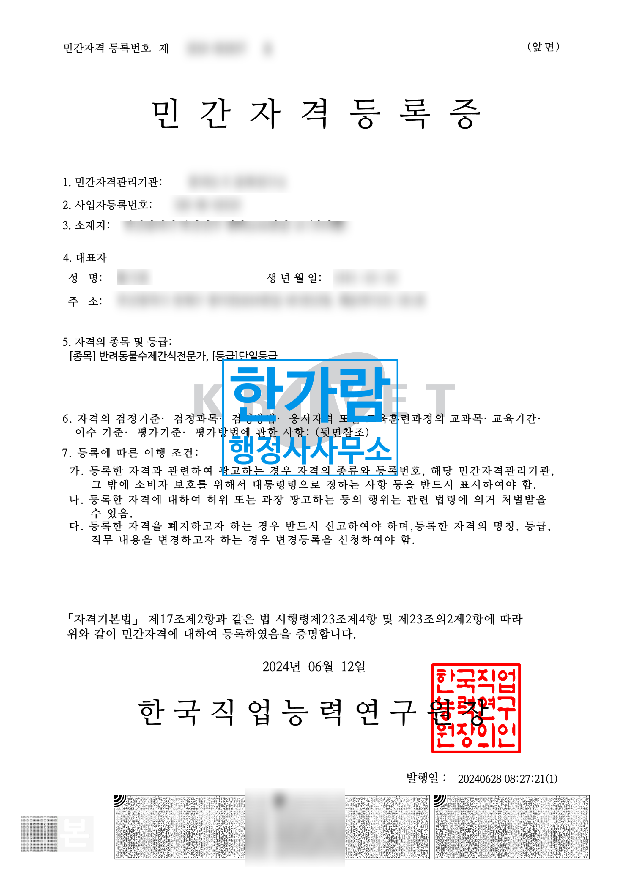 반려동물수제간식 전문가, 반려동물케이크 전문가 민간자격증 등록 시 필요한 서류