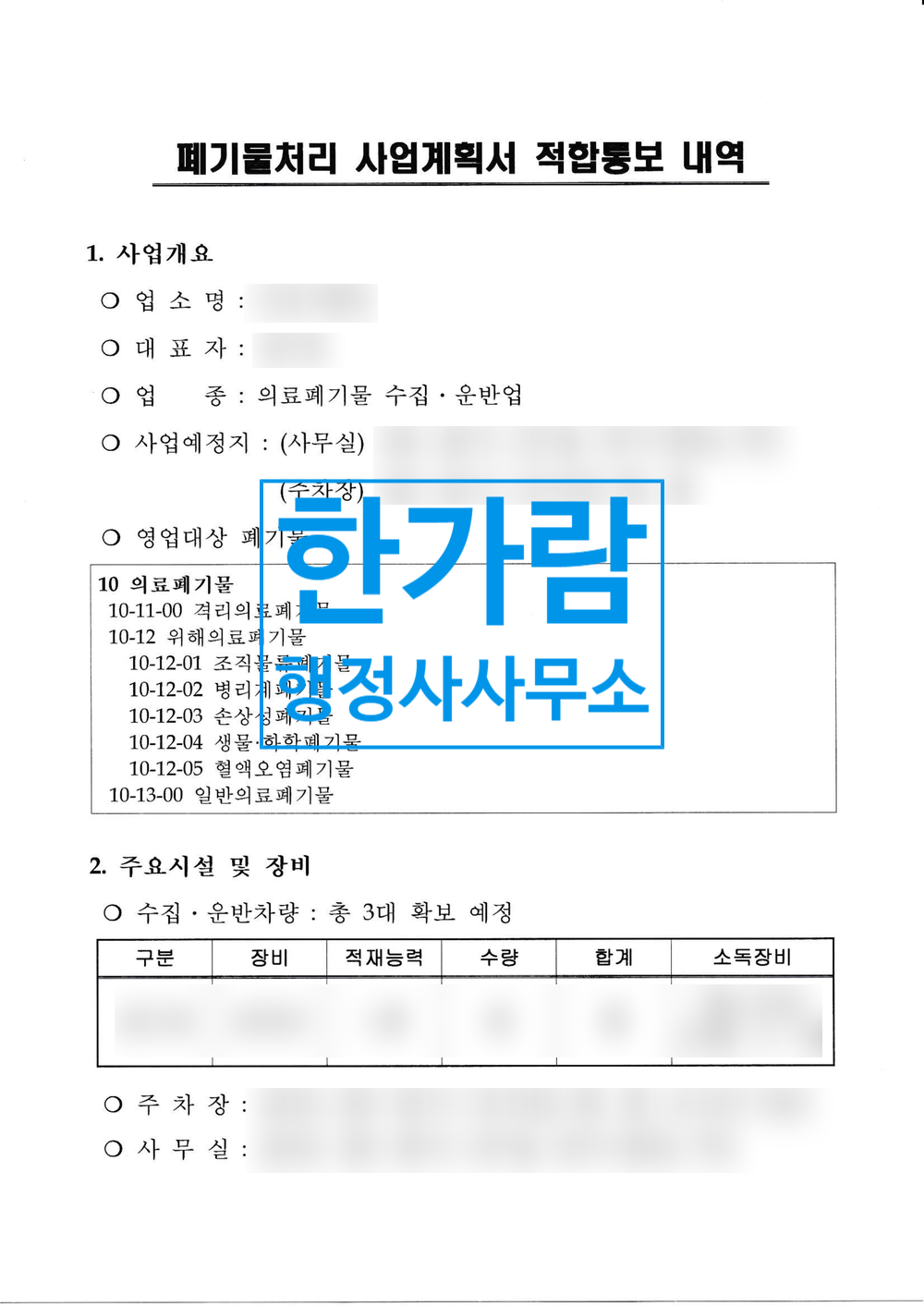 의료폐기물 수집운반업 사업계획서 제출할 때 필요한 서류