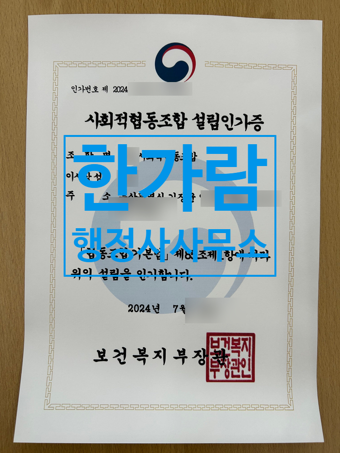 6. 사회적협동조합 설립인가증, 공문 발급