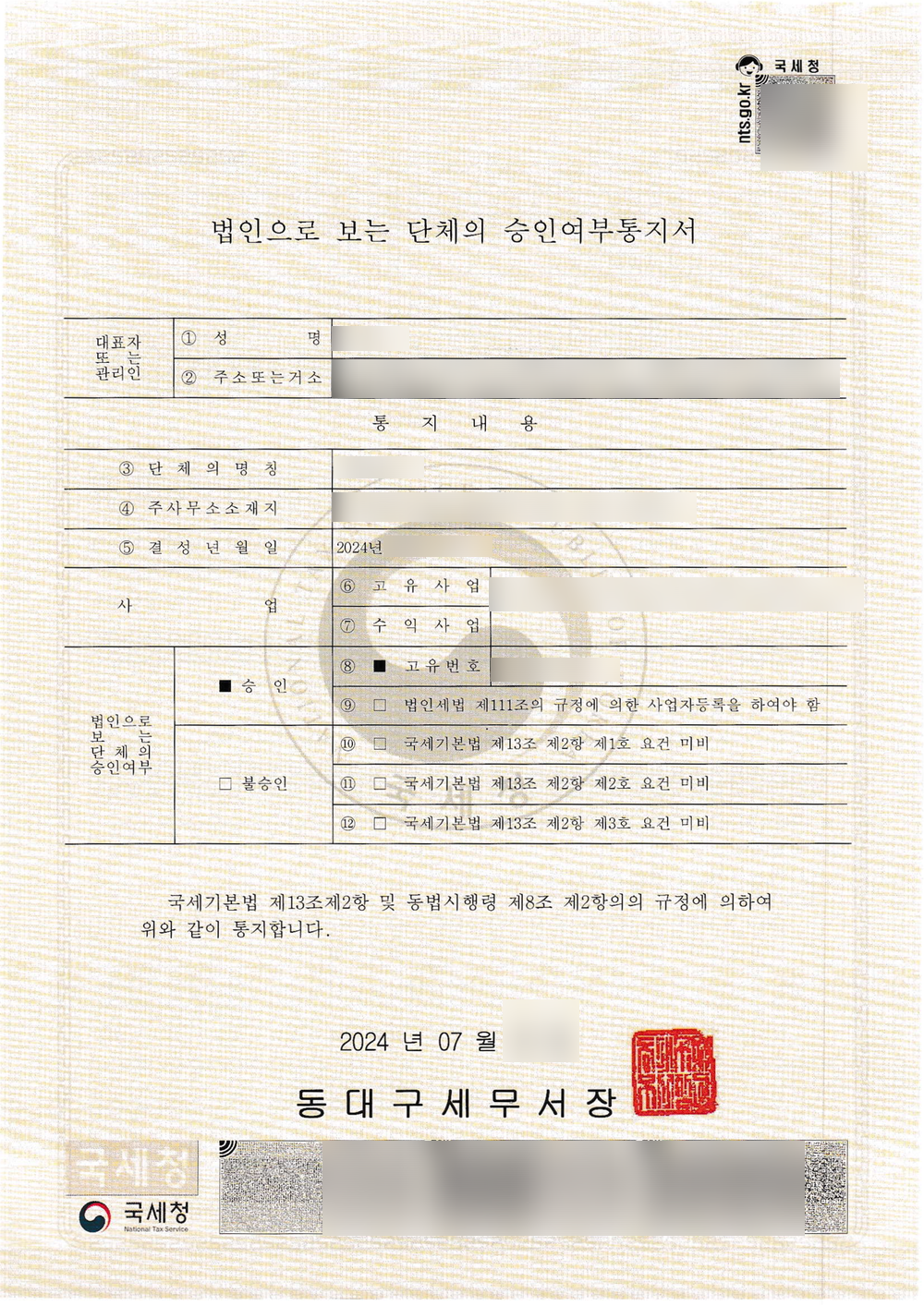 고유번호증 (법인으로 보는 단체) 발급 절차