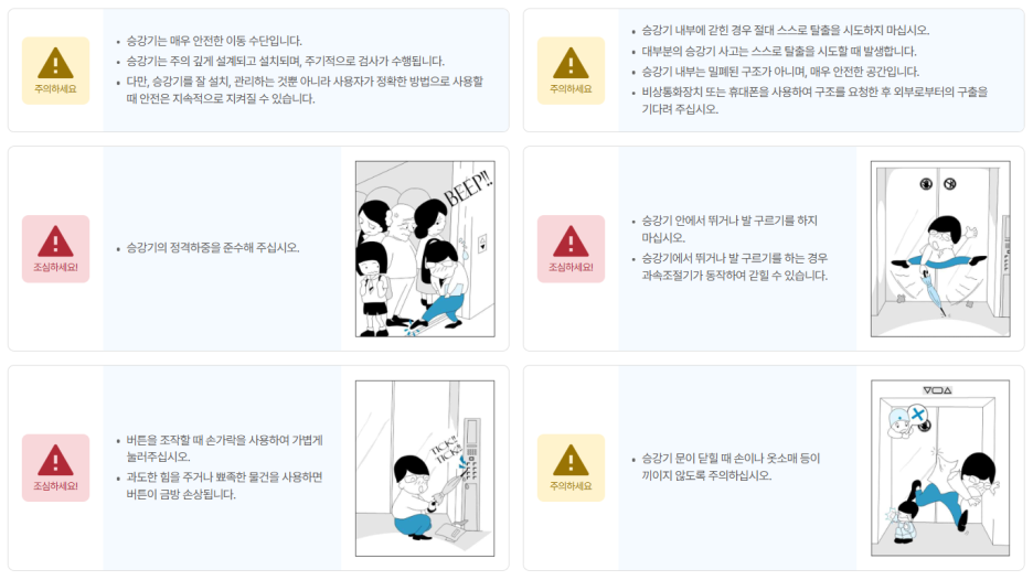 고속승강기, 중저속승강기인지 여부에 따라 요건이 조금씩 다릅니다.
