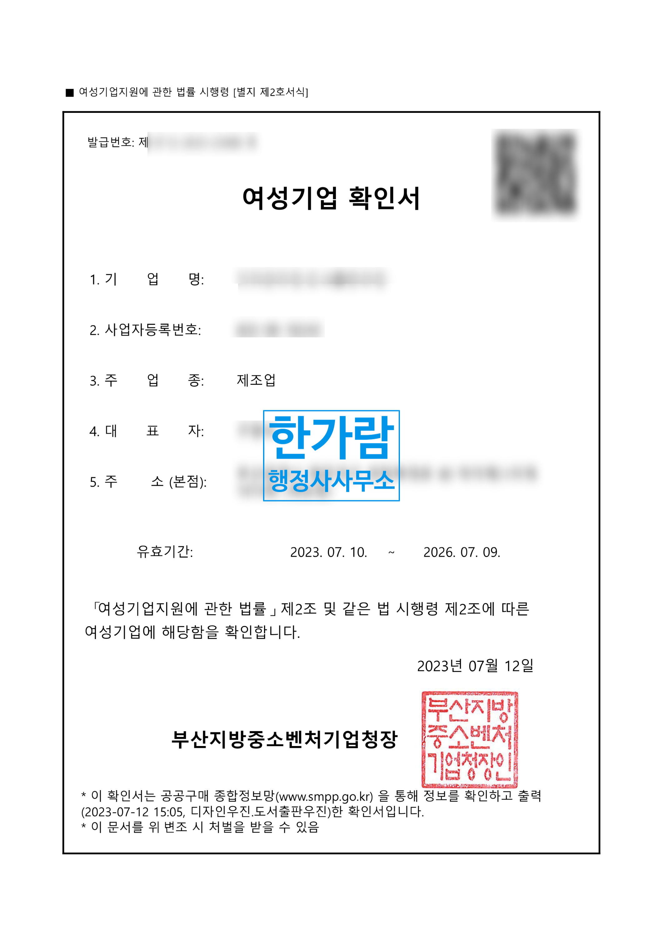 부산 여성기업확인서 발급방법