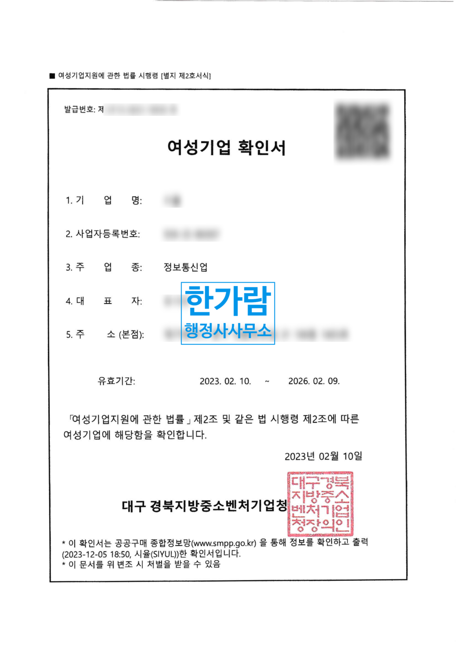 여성기업확인서 발급 전문행정사에게 밑고 맡겨주세요