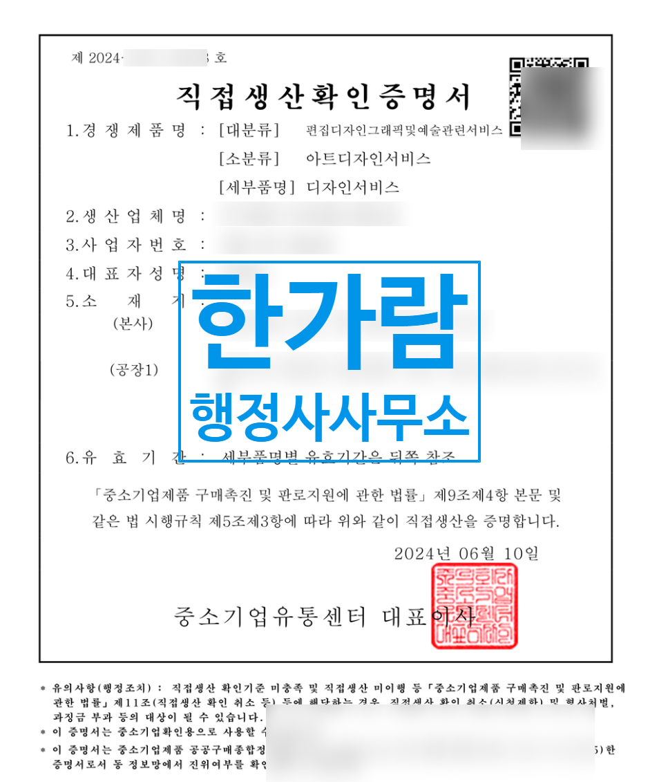 디자인서비스 직접생산확인증명서발급시 필요한 서류는?