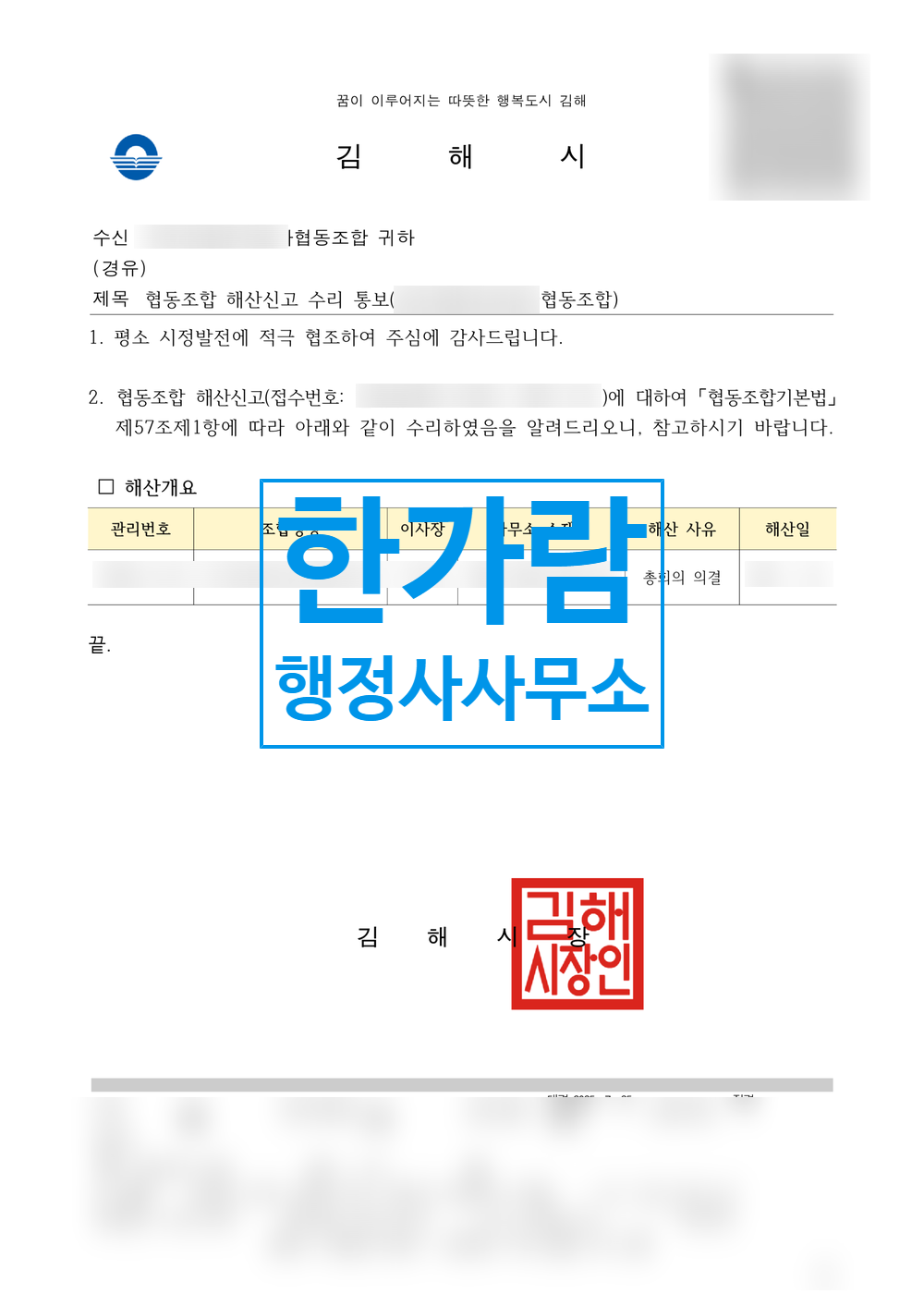 협동조합 해산 업무가 필요하신 분은 언제든 전화주세요