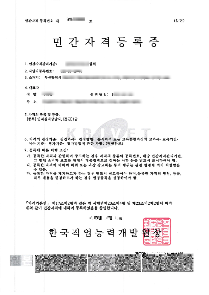 인지 심리 상담사 민간 자격증 등록 완료