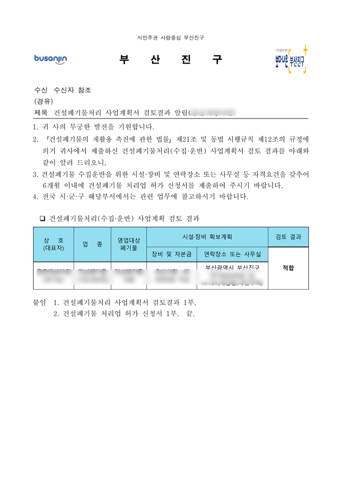 건설폐기물 사업계획서 적합통보를 수령하여 포스팅 합니다.