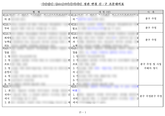 ③ 개정될 정관(신 · 구 조문 대비표 포함) 1부