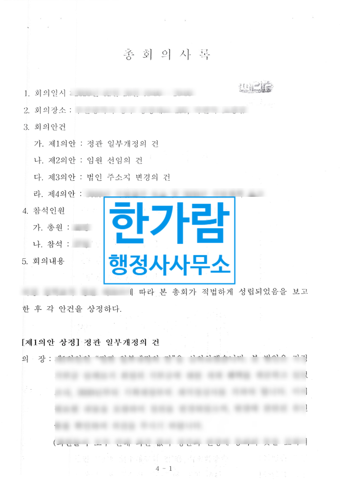 ※ 총회 혹은 이사회를 열어 의사록을 공증하고 바로 등기 및 고유번호증 변경을 진행한다.