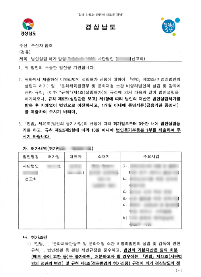 업무를 할 때는 설립허가 전에 인감증명서, 공증용 위임장 등을 받고 진행을 합니다.