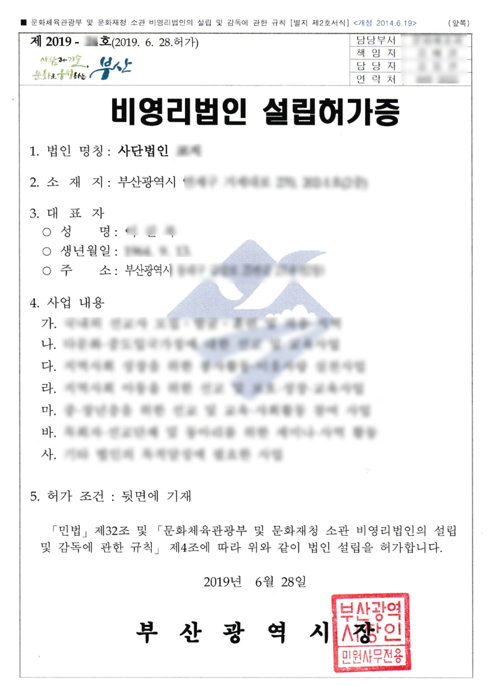 부산 비영리 사단법인 설립 허가 결과