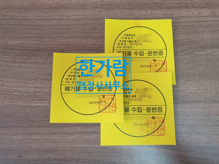 건설폐기물은 기본적으로 차량이 3대이기 때문에 수집운반증이 3개 나옵니다.
