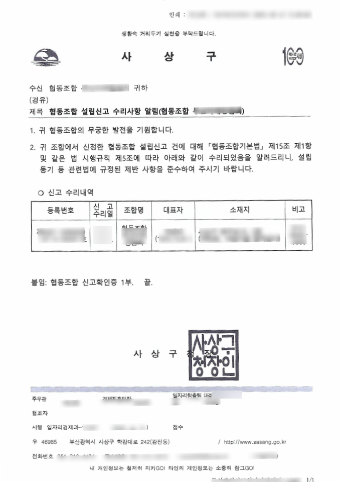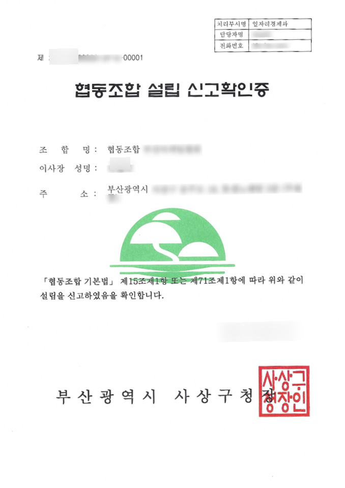 부산 사상구에서 설립 신고를 완료한 협동조합입니다.