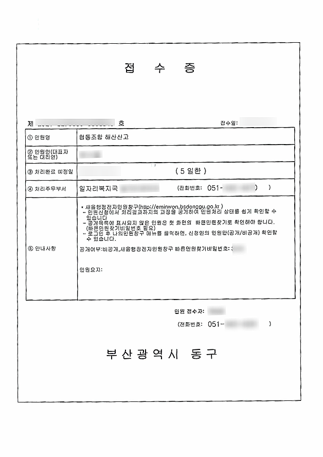 2. 해산 총회 후 신고를 하면 해산 관련 공문을 줍니다.