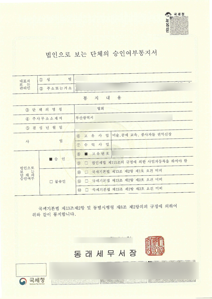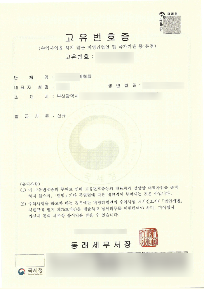 부산 동래 법인으로 보는 단체 고유번호증 발급