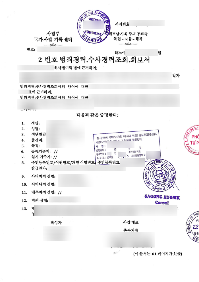 베트남 범죄경력증명서가 필요한 경우 언제든 연락주시기 바랍니다.