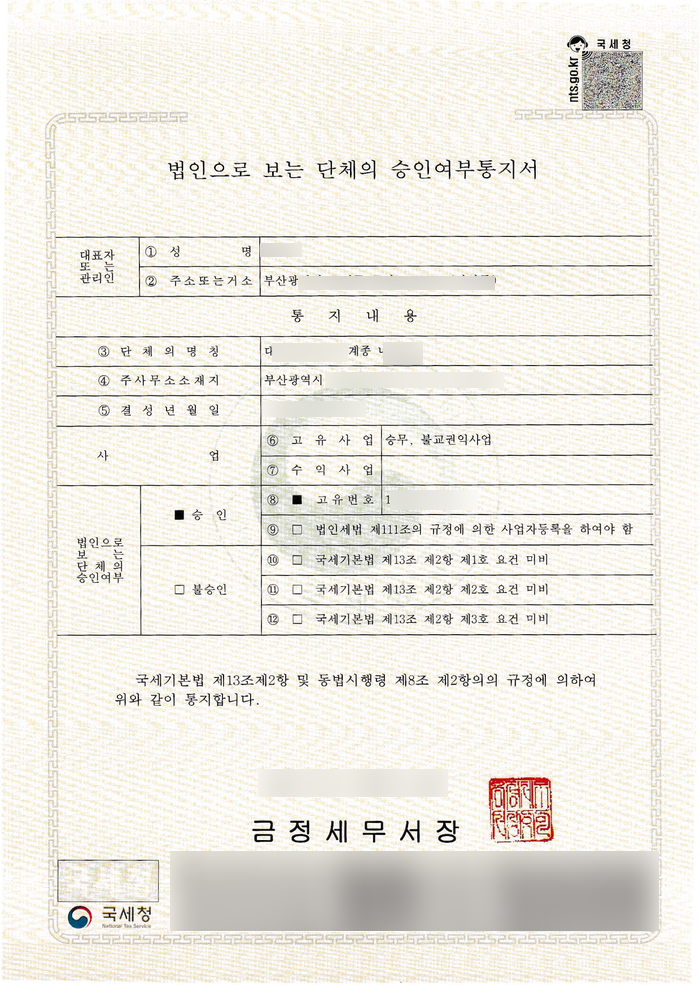 절, 교회 등의 고유번호증은 일반 법인으로 보는 단체의 고유번호증 발급과 크게 다르지 않으나, 해당 종교의 임명서 등을 필요로 하는 경우가 있습니다.