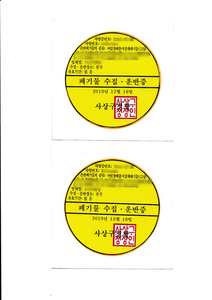 해당 허가는 2019년 10월 신청해서 2019년 12월 허가가 난 사업장배출시설계 수집운반업입니다.