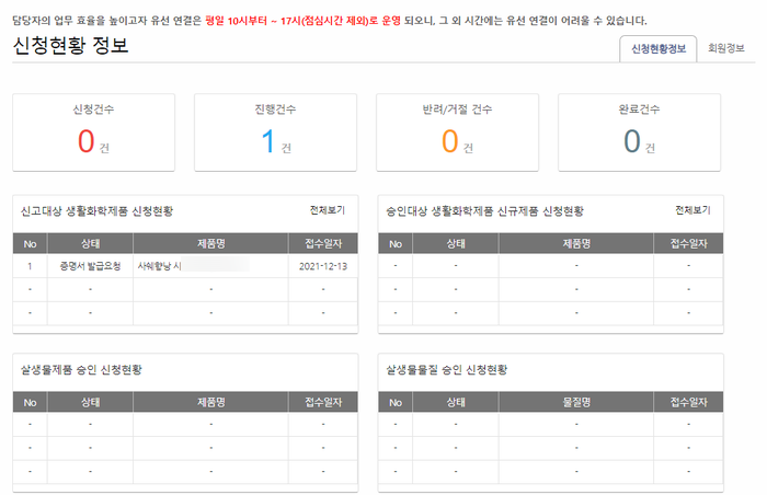 생활화학제품 신고 챔프 등록 완료