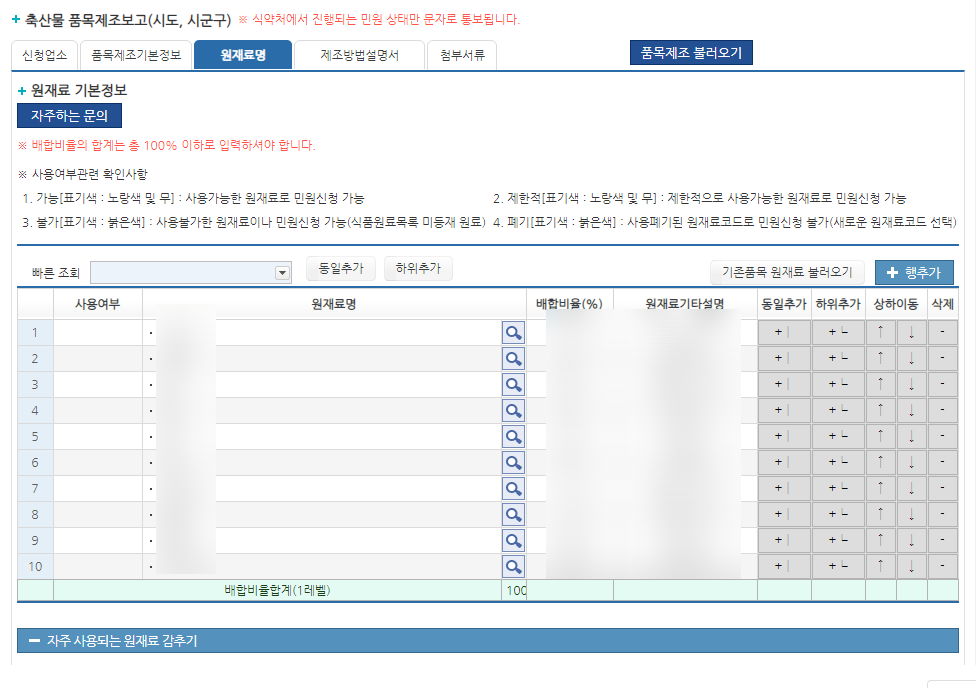 들어가셔서 품목제조 기본정보에 들어가셔서 제품명, 유통기한, 설정근거, 보존 및 유통방법 등을 입력하시면 됩니다.
