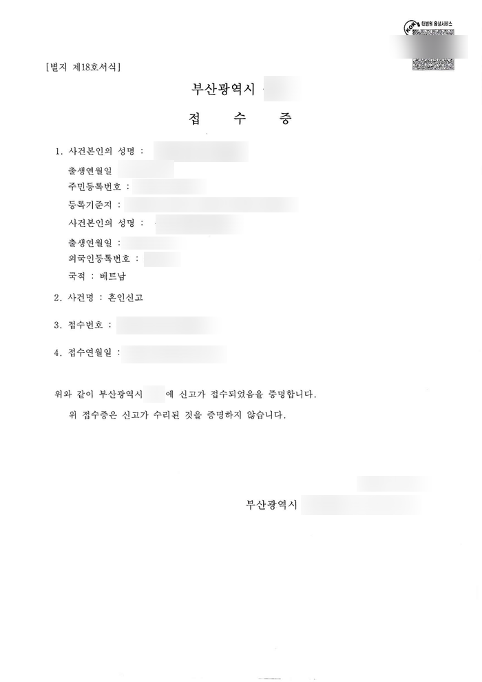 부산, 경남 베트남 혼인요건인증서 발급 / 혼인신고